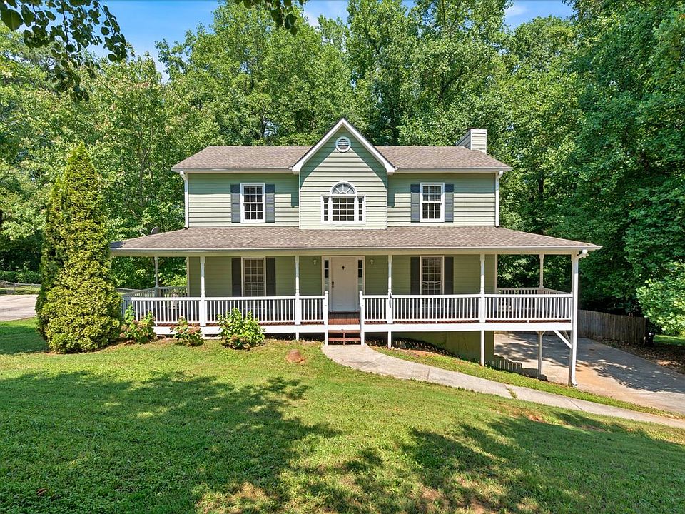 Come and see this beautiful two-story home with southern charm starting with the wrap around porch perfect for sitting outside on a rocker or porch swing and sipping some tea. There is a large family room with fireplace for enjoying cozy moments and holiday gatherings. Enjoy the stainless-steel appliances in the bright white kitchen and perfect bedroom on the main for guests or as an office. The owner's suite includes a trey celling, large walk-in closet, and bathroom with separate garden tub and shower. Two large secondary bedrooms upstairs as well. The newly finished basement can be a playroom, man-cave or bedroom. The yard is close to an acre, fenced with corn hole set up in the backyard, perfect for grilling out and entertaining. There is no HOA Renter is responsible for all utilities and yard maintenance. The owner will provide pest control which happens on a quarterly basis.