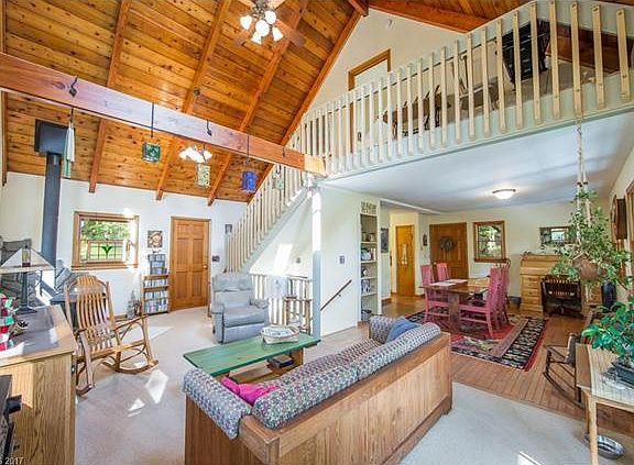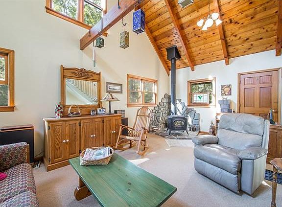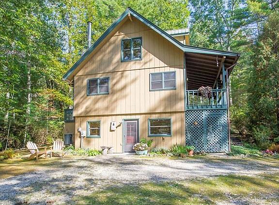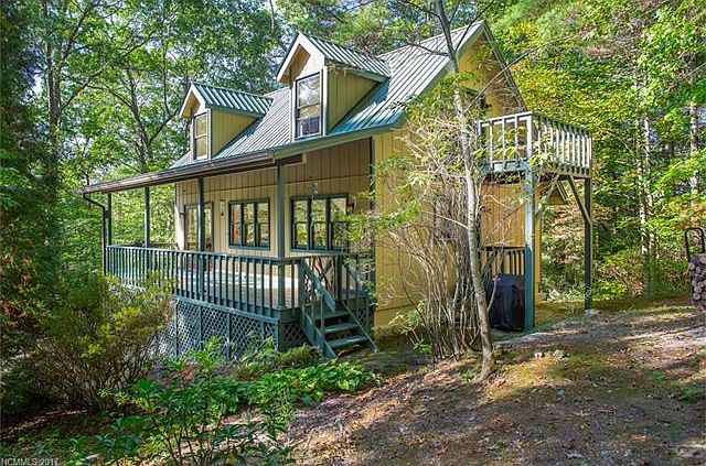 The perfect cabin in the woods! 7 minutes to DuPont State Forest, this impeccably maintained cabin is tucked away on a private, wooded 1.46 acre parcel. The main level features a soaring cathedral ceiling in the living room, with a wood burning stove for cozy evenings when it's cold outside. Large covered porch. Master bedroom is on the 3rd level with en-suite bath and private deck. Basement level features two bedrooms and a bonus room, & convenient root cellar/storage room. Home warranty incl.