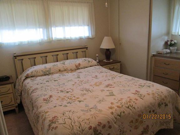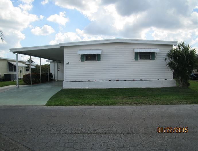This well-maintained home comes with many features including almost 1,000 square feet of living space, a 200 square foot lanai with glass windows and screens, roomy kitchen with newer wooden cabinets and counter tops. Bathrooms have ceramic tile floors and two year new comfort height toilets. Easy care laminate flooring in dining and living rooms, berber carpet in lanai. Comes tastefully furnished including newer wicker furniture in lanai. Air conditioner was installed in 2012. This home is truly move-in ready! Monthly fee of $787 includes trash removal, recycling, water/sewer, lawn mowing and edging. Purchase the share for the lot for $75,600 and the monthly fee reduces to $255 and you will own real property. Orange Harbor is an over age 55 resident owned waterfront community located close to shopping, restaurants and downtown Ft. Myers.