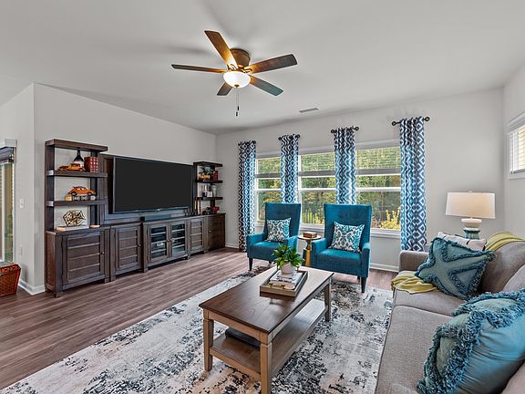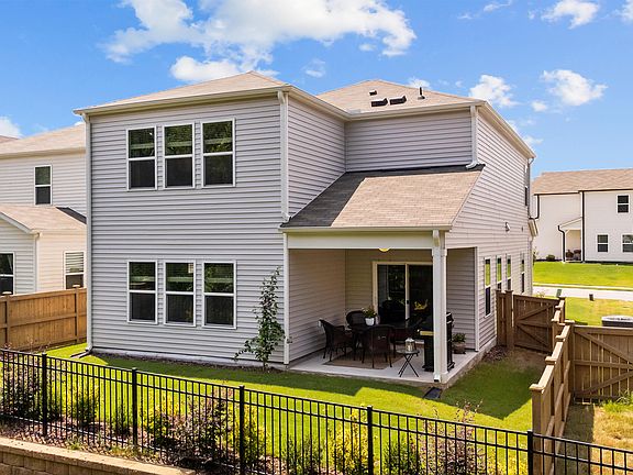 Stunning 4-bedroom, 3-bath single-family home, built in 2022, nestled in the serene Forrest at Flowers Plantation in Clayton, NC. With 2,811 sq ft of elegant living space on a 0.10-acre lot, this home features a two-car garage, a large open-concept kitchen, dining and living area, and a main floor guest suite with beautiful flooring and automatic blinds. Upstairs, enjoy a spacious loft and two generous guest bedrooms sharing a bath. The luxurious primary suite boasts a large walk in shower and an enormous closet. The backyard offers a cozy, tranquil retreat with views of woods, ensuring privacy with no future developments behind you.