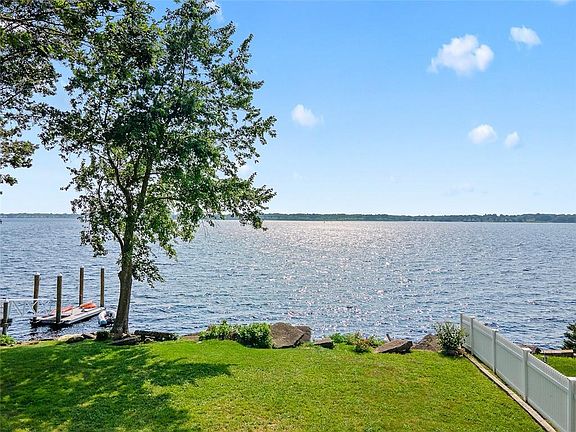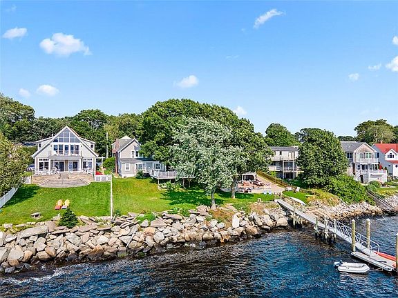 SPECTACULAR WATERFRONT HOME ON THE TERRACE! Enjoy the stunning sunsets from your massive deck with amazing water views! Once you step into this wonderful gem of a home from the covered front porch, you will see the historic charm of this circa 1900 colonial. The fireplaced living room features beautiful hardwood floors and leads right into your large dining room, creating the perfect entertaining space. There is also a bonus room off the dining room that would make a great office or hobby room. The dining room and your nice sized kitchen with stainless appliances leads to your huge family room with windows across the rear of the house, providing loads of natural light and breathtaking views of the Providence-Newport ferry, sailboats and the west bay. Retreat to the second floor master bedroom, complete with hardwoods, ceiling fan, large closet and water views. This character filled home also boasts 3 additional bedrooms and a second full bathroom. 2013 updates include vinyl siding, replacement windows and roof. Composite 24'x 30' rear deck replaced in 2010. Chimney and cap redone in 2016. The full unfinished basement is perfect for all your projects. This fabulous property has mooring possibilities and no flood insurance required. A Riverside Terrace beauty!