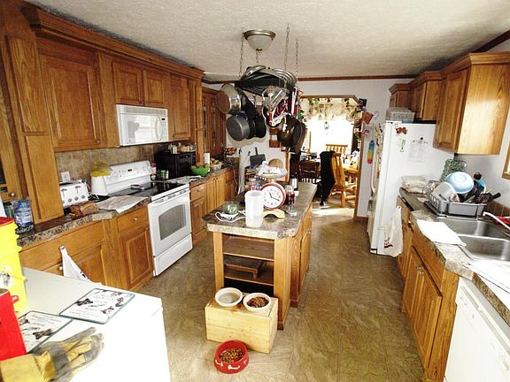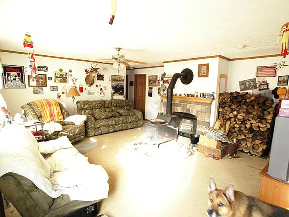Country home only 10 years old with large wooded acreage on quiet road! Home is set well back off road offering lots of privacy surrounded by 10.6 wooded acres, beautiful oak kitchen with lots of cabinets and center island,large living room with fireplace, master bedroom with big walk in closet and master bath with Jacuzzi style tub, permanent solid skirting surround, nice sized mud-laundry unit room 10x20 view deck, southern exposure, under ground power, metal storage shed.
