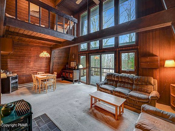 'Property is Under Contract and considering back-up offers only at this time.'This sunfilled chalet is situated on a spacious wooded lot and offers the perfect blend of privacy and convenience just minutes from major highways, shopping, hiking, and ski mountains. Featuring 2 bedrooms, 2 bathrooms, and a loft, this home is perfect for those seeking peace and tranquility in the heart of nature. The exterior of the home is constructed with beautiful wood finishes, and the large windows allow for plenty of natural light to flood the interior. Inside, the open-concept living area boasts a cozy propane stove, perfect for chilly nights spent indoors. The bedrooms are located on separate levels of the home and the loft provides additional space for a home office or a third sleeping area. Outside, relaxation, with views of the surrounding woods providing a serene backdrop. A private horseshoe driveway provides ample parking for guests. Call to book your showing today!
