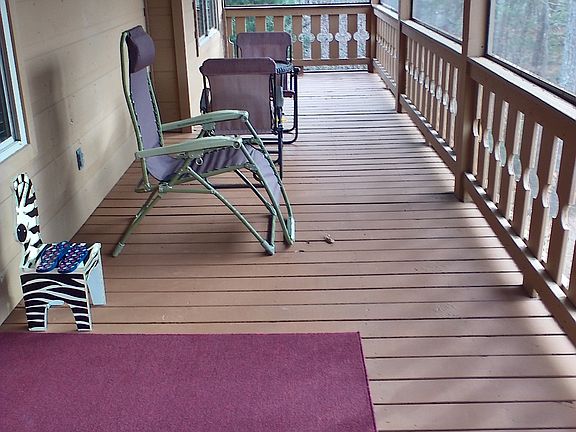 - Exterior: Porch, Wooded Lot, Private Location, Deck, Garden Spot, Wrap Around Deck, Exterior Fireplace, Screened Porch