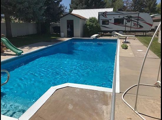 Newly remodeled all brick single level home. This home has a large living room and beautiful upgraded kitchen with new black slate appliances and granite countertops. Master bedroom includes an ensuite bath. The home has energy efficient windows, two furnaces and a brick gas fireplace. Enjoy the large covered back porch which overlooks the fully landscaped yard and large in ground salt water pool perfect for making fun family memories. Attached to your home is a two car garage with ample storage and a two car covered carport. Included in the backyard is a large RV pad with dump station. The large covered front porch has beautiful mountain views. Home is located within walking distance to schools and park. Call or text Aubrey at 435-730-4972 to schedule a showing. Buyer to verify all information. The details in this posting are provided as a courtesy only.