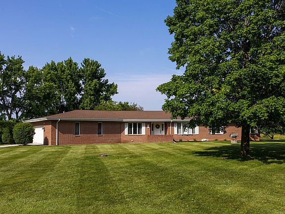 Welcome to this beautifully updated all-brick ranch, nestled on a serene corner lot in a peaceful rural setting. Situated on almost 3 acres, this property offers the perfect blend of comfort, space, and functionality.Step inside to discover a gorgeous, modern kitchen featuring solid surface countertops, a large island with a farmhouse sink, and ample custom built cabinetry--ideal for both everyday living and entertaining. The dining room is warmed by a cozy fireplace, creating the perfect atmosphere for family gatherings.This well-maintained home boasts 3 spacious bedrooms, including a primary suite with a private bath, plus an additional full bathroom. The unfinished basement is already stubbed for a third bathroom, offering excellent potential for future expansion or customization.Outside, enjoy peaceful views from your back deck, ideal for relaxing or hosting guests. Car enthusiasts and hobbyists will appreciate the huge main garage plus a large Quonset hut with concrete floor, offering plenty of room for vehicles, equipment, or workshop space.Don't miss this rare opportunity to own a charming, move-in ready ranch with room to grow, just minutes from town but with all the benefits of a quiet, rural lifestyle!