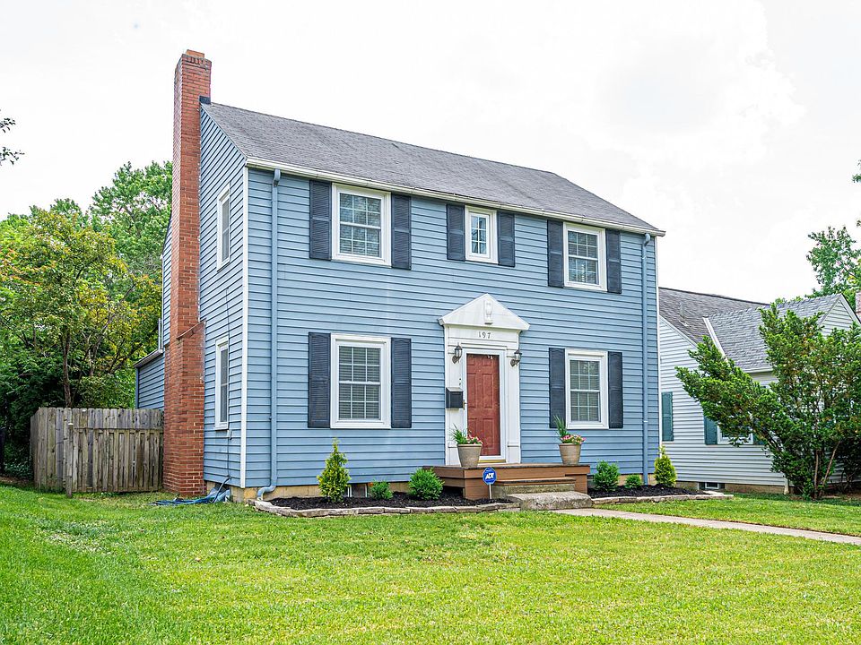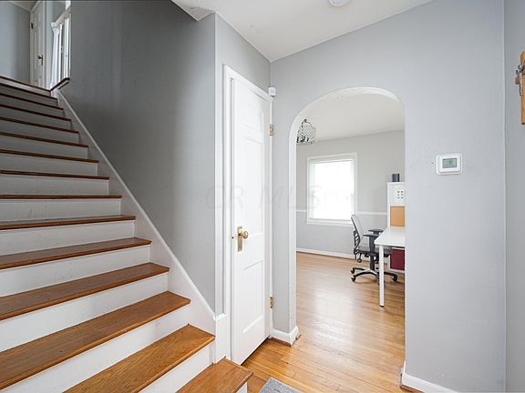 Don't miss this fantastic Clintonville Classic Colonial! You will love the renovated kitchen with white cabinets, huge island with eating bar, stainless steel appliances, large eating area, tobacco teak floors and wood beam...Rare 1st floor laundry/mud room. Relax in the spacious living room with hardwood floors, white woodwork and wood burning fireplace. Separate dining room could also serve as an office or playroom. Beautiful 2nd full bath on the main floor with walk-in shower. 3 spacious bedrooms with hardwood floors and renovated full bath up. Extra living space in the knotty pine finished rec room in the basement. Large secluded backyard with privacy fence and deck. 1 car garage and gate to shared driveway parking. Walk to restaurants and shops. Newer HVAC and Windows
