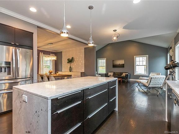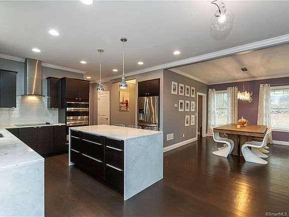 5 Yr, 4 bedroom, 3.5 ba Colonial w/contemporary flair. Espresso wood flooring throughout this gorgeous home w/1st floor open concept Kitchen, Dining & Living Room areas. The living room is light & bright w/soaring ceilings & gas fireplace - flip a switch for instance ambiance or open the sliders & visit the new Tyvek deck w/solar lights for family gatherings & BBQ's. Nestled among the back roads bordering the Bethel Land Trust w/distant views of rolling hills-it speaks serenity. Get away from the crowded living style of homes on top of homes like the newly constructed ones in downtown Bethel & enjoy nature here on the home's 1.88 acres! A peaceful country road within mins to Exit 8/9 of I 84 for easy commuting. This home features a main floor office & bedroom w/access to hallway bathroom, great for in-laws or room for a guest. The other 3 bedrooms upstairs include a large Master w/walk in closet & Ensuite 5 pc bathroom. 2 other bedrooms are on the far end of the hallway & there is a separate laundry room & hallway bath. The lower level boasts entertainment w/porcelain wood grained tiled floors, wet bar w/wine fridge & sliders to a patio & fire pit w/views of the rolling hills & nature. Back inside is a ?? ba & access to a 2 car garage......fit for a car enthusiasts, $5k worth of New Age Black Diamond Plate cabinets & wall storage systems w/newly finish Epoxy garage flooring. Pool ready w/plans in place already approved by the town. Lots of value ??? hope this one is for you!