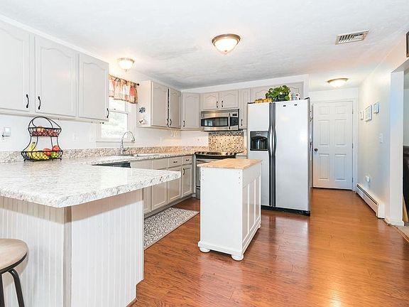 Nature lovers delight! This young colonial sits on just under 4 acres in a country setting, but close to commuter routes, schools, stores and restaurants! You will feel right at home as you enter the main floor into a welcoming open concept eat in kitchen. The dining area brings in natural sunlight through a sliding glass door that opens to an expansive deck overlooking a picturesque backyard. A sizeable living room, formal dining room and half bath with laundry round out the first floor. Step up stairs and find a front to back Master Bedroom with walk in closet, two more spacious bedrooms and a Full bath. Need some extra space? The finished basement offers two separate rooms perfect for a family room, home office or workout space. A coop if you want chickens or farm animals, plenty of land for off road toys, and a pond that makes for a regulation size rink in the winter time! This wonderful home awaits its new owner.