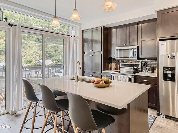 From your deck terrace, behold unique views of red quartzite cliffs that gave the name to this historic town. This newly constructed end unit nestled next to Turkey Creek appreciates additional light with its westward windows. Thoughtfully constructed space flows through multi-levels, amenities that furnish luxury and ease. One car garage with snow cleared by property management will get you on the mountain in 20 minutes. Or, hop on your snowmobile to Shrine Pass, as your backyard is literally the White River National Forest.