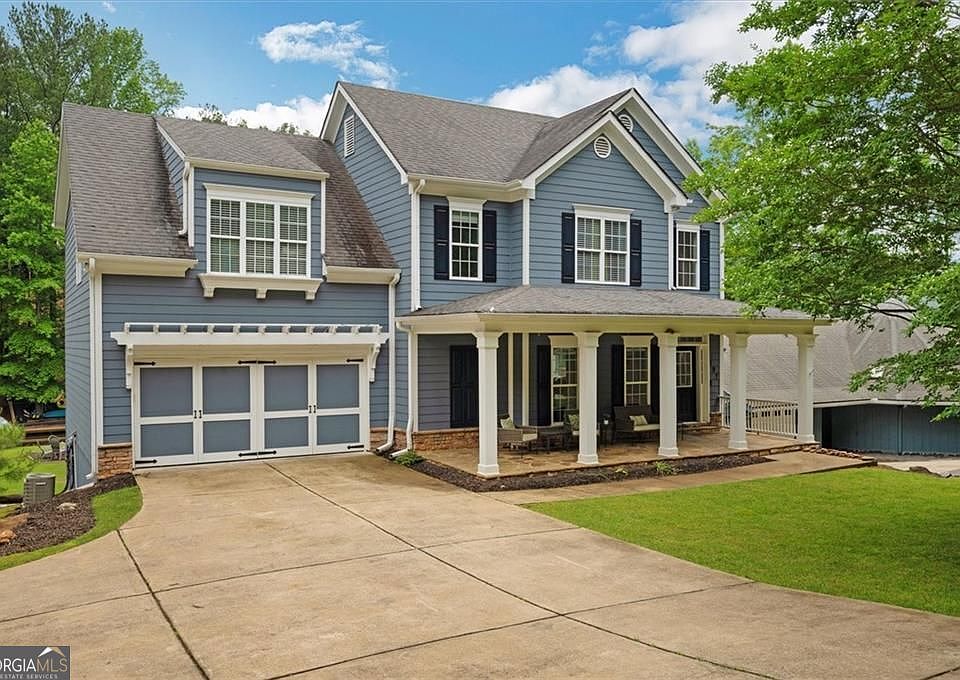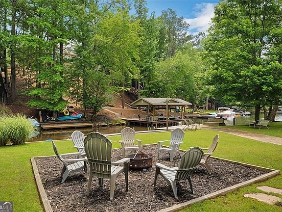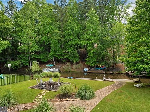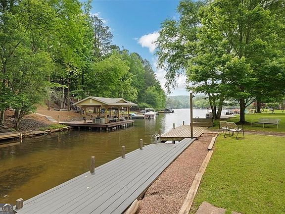 Welcome to your dream LAKEFRONT home! This exceptional home is nestled on a rare, flat lot with breathtaking panoramic views of the water. Offering direct access to the serene shoreline, this property promises the ultimate in lakeside living. Imagine waking up to beautiful sunrises, enjoying the tranquil breeze, and indulging in outdoor activities right from your backyard. Perfect for both relaxing and entertaining, this home features expansive outdoor spaces with a large two-story deck, fire pit, double dock, & hot tub all with unobstructed lake views. All new exterior paint & deck paint. Inside, the open concept living areas are flooded with natural light, creating a seamless flow between indoor and outdoor spaces. The living area features a formal dining room, large living room with stone fireplace, large kitchen with plenty of storage & eat-in kitchen space with large windows that perfectly frame the lake, providing stunning views from every corner of the home. There is a large main floor bedroom, full bathroom, & laundry. Upstairs features an oversized Primary Suite with large double vanity, a soaking tub with large picture window view of the lake, separate shower, & huge walk-in closet. Upstairs includes two additional guest bedrooms, large double vanity guest bathroom and open loft area. The large daylight basement boasts an additional large bedroom suite, full bathroom, open living room & game room. Additional unfinished storage spaces are perfect for owner's closet, lake toy storage, or growth potential in the future. This property has a strong rental history and is located in Phase 1 of Lake Arrowhead Community which is the only section that allows short-term rentals. Lake Arrowhead is a gated community with 24-hr security, two swimming pools, parks, 14 walking trails, clubhouse, 18-hole Golf Course, restaurant, chapel & Marina. Owner is Licensed GA Realtor