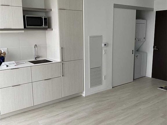 Extemely Low Cost Bachelor Apartment In The Heart Of Downtown Toronto! Directly Accross From The Eaton Centre And Within Walking Distance To Ciniplex, U Of T, Ryerson And Many Great Resturants. Queen Subway Is Just Steps Away! Beautiful South Facing Views Of The City And Lake. Contemprary Kitchen With Built In Appliances, Laminate Floor Through And 9' Ceiling To Floow Windows.