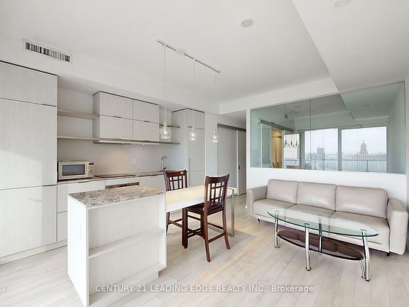 Spectacular 1 Bedroom plus 1 Den, Total 645 Sqft. With Unique Feature Include A Centre Kitchen Island With Storage And Seating Area. Sweeping Views Over The City. The Bathroom Comes With A Built-in Laundry Closet And A Linen Closet.Located Steps From Queen Subway Station and Directly Opposite Eaton Center. A Close Proximity to St. Mike's Hospital and UTM. Bright Open Concept Floor Plan, Floor To Ceiling Windows, Balcony.T he Massey Tower Inc Luxurious 5 Star Amenities 24/7 Concierge, Porter, Fitness Club, Sauna, Steam,Piano Bar And Cocktail Lounge. Party Room, Theatre Room, Guest Suites And More. 1 Parking And 1 Locker Included.