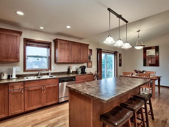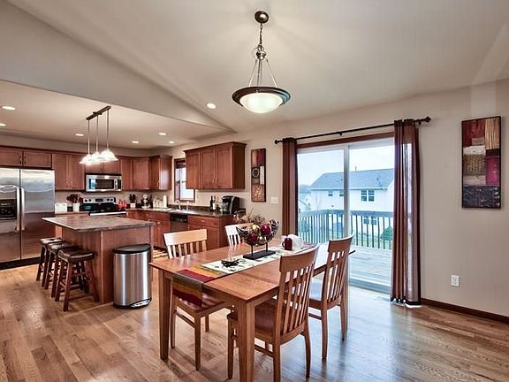 IMPRESSIVE OPEN CONCEPT AND SPLIT BEDROOM RANCH HOME. VAULTED CEILINGS CREATE ARCHITECTURAL DETAIL FROM THE ENTRANCE. THE EAT IN KITCHEN FEATURES MAPLE CABINETRY WITH CROWN MOLDING, SOLID WOOD DOVE TAIL DRAWERS, AND A CENTER ISLAND WITH BREAKFAST BAR OVERHANG. YOU'LL APPRECIATE THE STAINLESS STEEL APPLIANCES, PLENTY OF COUNTER SPACE, AND UPGRADED LIGHTING. USING THE LARGE FENCED YARD IS EASY WITH A 12' X 10' DECK AND 12' X 9'6 PATIO AT THE WALK OUT LOWER LEVEL. CONVENIENTLY LOCATED BY THE KITCHEN AND GARAGE ACCESS IS THE MAIN FLOOR LAUNDRY AND MUDROOM. HARDWOOD FLOORING IS IN THE KITCHEN AND DINING AREA WITH A FOCAL POINT ON THE OPEN RAIL TO LOWER LEVEL. THE MASTER BEDROOM OFFERS A BATH SUITE WITH WALK-IN CLOSET. UPGRADES INCLUDE 2 X 6 WALLS, WOOD CASED WINDOWS, UPGRADED FLOORING, COVERED FRONT PORCH, DECOR LIGHTING AND RECESSED CAN LIGHTS. THE LOWER LEVEL IS EXPANDABLE WITH 2 WINDOWS AND A WALK OUT SLIDING DOOR TO THE YARD. PASSIVE RADON SYSTEM PLUMBING, FULL BATH STUB PLUMING, HIGH EFFICIENCY FURNACE, CENTRAL AIR, AND WATER HEATER. 1 BLOCK FROM LINN GROVE ELEMENTARY, MINUTES TO HWY 151 (7TH AVE) AND HWY 13. AVERAGE MONTHLY GAS: $39, AVERAGE MONTHLY ELECTRIC: $128.