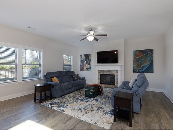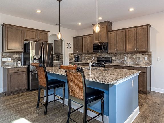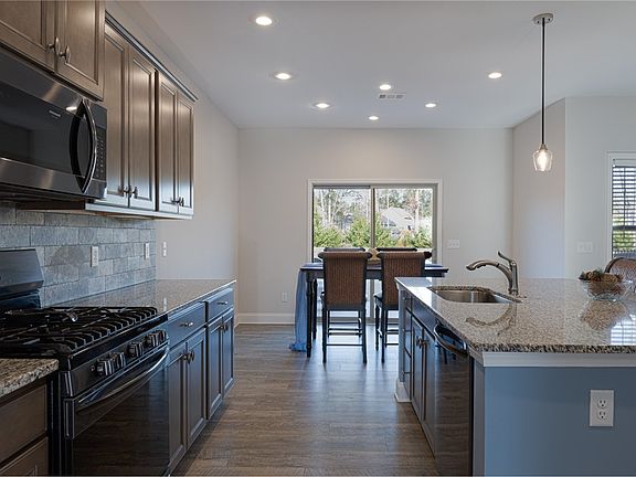 This beautiful home is full of light and upgrades galore! LVP in the main living areas, upgraded carpet, and top-notch lighting and finishes throughout. The paneled dining room flows to the butler’s hallway, with enormous walk-in pantry, to the open kitchen/living space. The eat-in kitchen includes a gas cooktop/oven, farmhouse style sink, tile backsplash and soft-close cabinets. From the large island, enjoy the view of the private backyard through sliding glass doors without missing anything in the great room. Also find one bedroom and separate full bath. Upstairs is the spacious primary bedroom w/seating area. The en-suite bath has dual vanities, bench shower, soaking tub and tile flooring. Also upstairs: three beds, shared bath with double sinks, and laundry room. The two-car garage features split unit heating/air and sealed floors for a space that can be used year round.