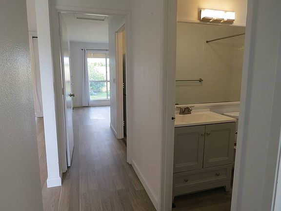 This property has brand new luxury vinyl floors , a tastefully remodeled kitchen with white cabinets and corian countertops.