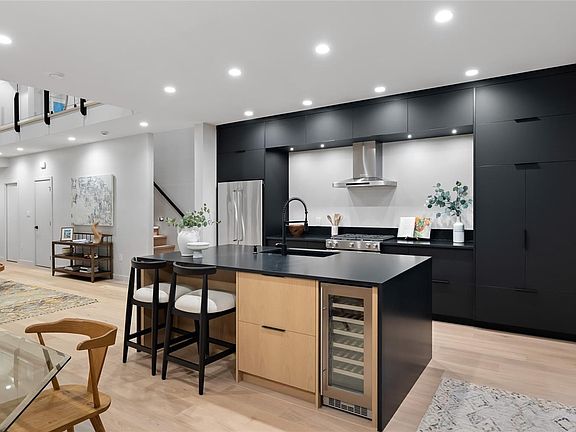 Modern open layoutExpansive windowsGourmet kitchenCustom cabsQuartz countersHigh-end appliancesOversized island