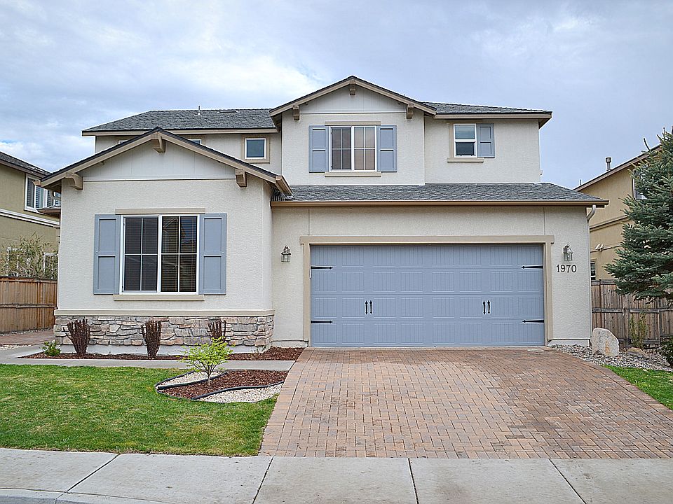 Delightful Bella Vista Village home with upgrades and custom touches! The harmonious floor plan has a formal living and dining room with high ceilings and updated lighting, along with a loft and great room concept between the kitchen and family room. The kitchen boasts granite counter tops and island with a dual tub sink, along with a gas range, pantry and large cabinets. The custom landscaping has a paver driveway, retaining walls and recently installed stamped concrete in the front, side and patio! The master bedroom has 2 walk-in closets, spacious bathroom with cultured marble dual sinks, bathtub and shower! The master and guest bedroom upstairs have upgraded fixtures, and the full laundry room is located on the second floor. There is fresh exterior trim and interior paint, and the garage is a 3 car tandem.