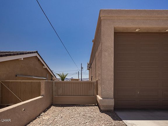 RV Garage Home Walking Distance to Downtown! 1970 Pima N Dr is a lightly lived-in Hammerhead-built home featuring a 50-ft deep RV garage with a 13.9-ft tall door, a mini-split for climate control, and 4 total garage spaces. With 1,553 sq/ft, 3 bedrooms, 2 bathrooms, and a split floor plan, this home offers great functionality and quality throughout. Used only a few months since 2016, it still feels nearly new. The fully walled backyard features mountain views, a huge covered patio, and an upgraded electric steel gate for rear access. On the side of the home is a covered, finished enclosure ideal for storage, shielding future pool equipment, or even as a possible pet run. The backyard is a blank canvas ready for a pool, spa, or custom outdoor retreat. Inside you'll find granite countertops, stainless steel appliances, tile floors, and a bright, open layout all just a short walk from downtown Lake Havasu.