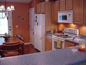 NEW PRICE. BRING ALL OFFERS. This beautifully maintained home features pecan hardwood floors in L/R, Kit. Hall. Eat-in Kit. has a breakfast bar, maple cabinets & beveled counters. Huge M/Bath with garden tub and sep. shower. It includes a computer niche, faux wood blinds & 4 ceiling fans. Situated on almost 1 acre that backs up to McGrits Creek and equipped with sprinkler system. No CDD/HO