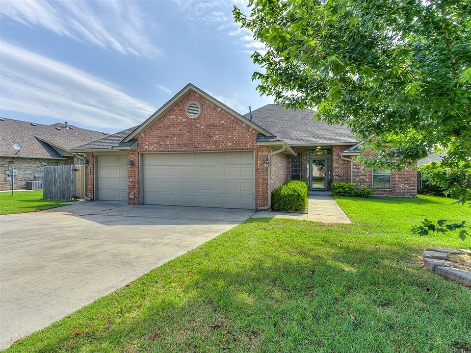 Gorgeous brick home in Choctaw School District! 1,924 sq ft, 3 bedroom, 2 bathroom, and an office. This open floor plan with crown molding, bar seating at the kitchen, stainless steel appliances, and a fireplace in the living room makes hosting a breezee! You'll love the luxurious master suite, complete with vaulted ceilings, ceiling fan, large bathroom with a double vanity and plenty of counter space, and a whirlpool soaking tub. If that wasn't enough, wait until you see the huge walk-in closet with built-in shelving and hanging racks through out. A dream! Laundry is made easy in this laundry room with built in storage, ample counterspace for folding, and a hanging rack. Don't miss out on this one. It will go quick!