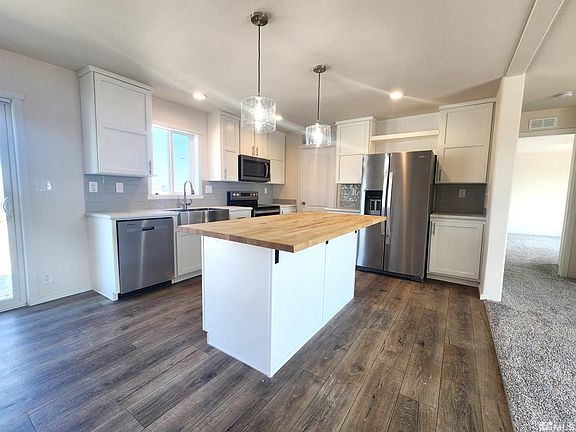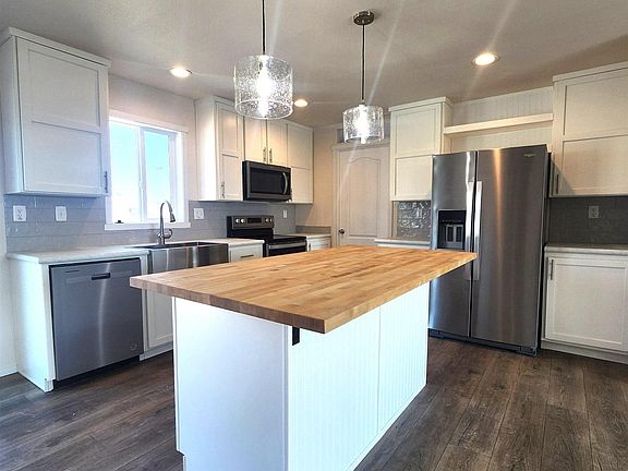 Stunning butcher block island in an open, great room style kitchen with an on trend farmhouse sink and gooseneck faucet. Stainless steel appliances appoint this already fabulous kitchen. There is a den off the dining room which would be a great office, library or space for the hobbiest in your home. Primary bedroom and ensuite is beautiful with dual sinks and full tile shower. Split bedroom floorplan. Massive laundry room and pantry with built-in cabinets and laundry sink. All on over 6 acres. Call today!