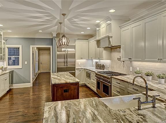 Stunning two-story waterfront home with renovations just completed by Simonini Homes. Brand new kitchen design and configuration with new breakfast peninsula, custom cabinetry, leathered quartz countertops, farm sink and Thermador appliances including 6-burner gas range with pot filler. Created new open-concept floorplan, added new flooring throughout (hardwood, custom designer tile and new carpet) and reconfigured main living area with show-stopping staircase, raising of entry ceiling and oversized sliding glass doors overlooking the lake. Enjoy the Southern exposure with outdoor living on your covered patio, sandy beach and personal dock with boat lift overlooking Lake Norman with long-range, Sunset views. Plenty of room for a pool!