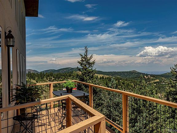 $100,000 Price Improvement on One-of-a-Kind Mountain-Contemporary Home. Private 6.4 acre setting backs to a secluded canyon with rock outcroppings and forest. Home is suspended into the canyon on a pedestal with breathtaking, panoramic views of mountains, downtown Denver & Chatfield Reservoir. Soaring ceilings & walls of windows bring the outside in! Natural materials are in abundance: slate, granite, marble, solid wood doors and casings & maple cabinetry. The "Aerie Bridge House" is custom designed & built with traditional hard-coat stucco & natural gas in-floor heating in both home & garage. Stunning gourmet kitchen features stainless duel-fuel, 6-burner gas Viking Professional stove with 2 electric ovens, 2 Bosch dishwashers & 2 full sinks. Sub Zero 650 refrigerator. Fabulous Kitchen with 14 ft Breakfast Bar & Great Outdoor Living on 2 East-Facing, Cantilevered Decks make this a Wonderful Home for Entertaining. Enjoy breathtaking Sunrises & Views of the Moon Rising as well as Sunsets & City Lights from the House & Decks! Only 45 mins to Downtown & DTC. This owner-occupied property also has a history as a successful, highly-rated Airbnb and generated a strong income stream.