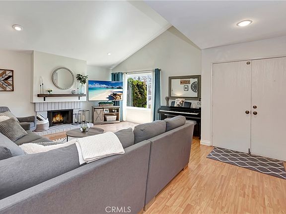 Well maintained 3B/2B single-story home on a cul-de-sac with generous sized living areas and bedrooms, as well as large private backyard and outdoor living space. Improvements/Upgrades include: newer roof; dual pane windows; furnace & A/C condenser; copper repipe; fencing; EV charging capability in garage. Spacious entry opens to main living area with a dramatic high ceiling and natural lighting all framed in by a classic fireplace. Across from main living area is an island kitchen with adjacent dining/everyday eating area. Kitchen has large windows, as well as a skylight, providing good natural lighting. Kitchen cabinets and a deep pantry leave lots of room for kitchen gadgets and ingredients. Down the hall is the first bedroom, which is large and will accommodate most any sized bed. Primary bedroom is oversized with plenty of room for a king sized bed and furniture, plus its own primary bath with walk-in shower stall. Primary bedroom has large windows that open to backyard letting in natural lighting. Third bedroom is smallest of the three, but will fit a queen sized bed. Second bathroom has a shower over tub and has also been upgraded. In the hallway you'll find a coat closet, separate utility cabinet, and a deep linen closet. Outside just off the kitchen is an adorable covered patio perfect for entertaining friends and family, or just relaxing in the shade. The main backyard has a very private feel and is perfect for gardening, children, pets, or just hanging out. The rear yard is fully landscaped with trees including lemon, orange, guava, and pomegranate trees. NO HOA Dues, good sized driveway, 2-car direct access garage, close proximity to shopping and restaurants, Trader Joe's, regional park, transportation corridors, and more make this an attractive place to call home.