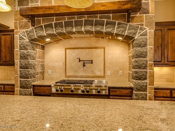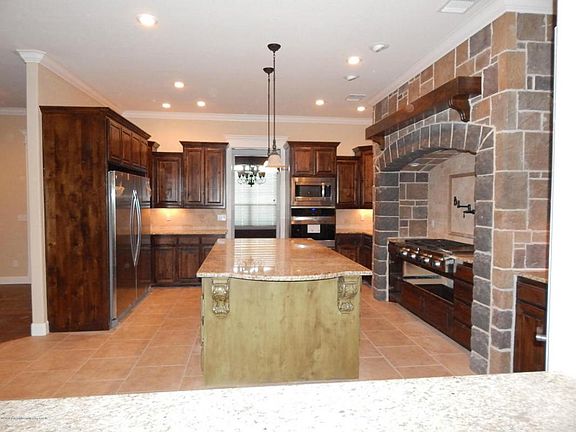 Stunning Custom Home!! This home has five bedrooms, 4 bath, formal dining area, breakfast area, office, large basement with 9 ft ceilings, and beautiful outdoor kitchen with cedar ceiling. Kitchen has custom painted island and commercial grade appliances. Great brick fence surrounding the driveway area. Backyard is fenced and sprinkled as well as sprinklers in the front yard. Beautiful!