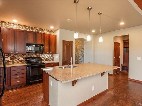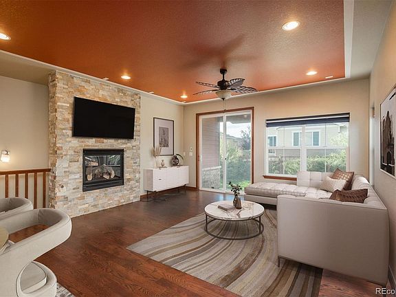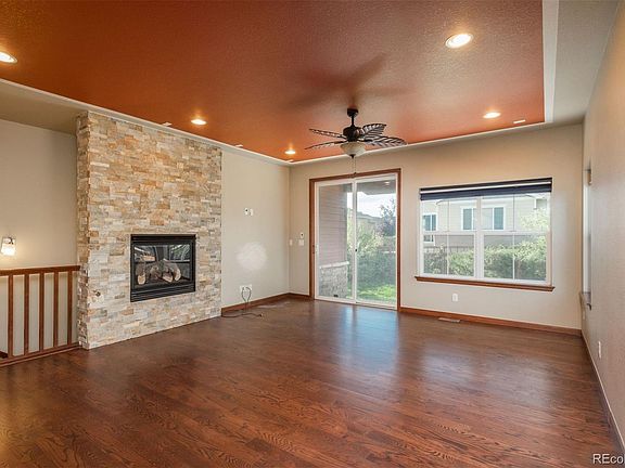 Welcome to this beautifully appointed corner-lot model home nestled in the heart of Aurora’s vibrant Painted Prairie community, where thoughtful design blends seamlessly with everyday comfort and convenience. From the moment you step inside, you're welcomed by a warm and inviting entryway that flows effortlessly into the main living areas. Rich engineered hardwood flooring stretches across the main level, leading you to an expansive living room anchored by a stunning custom stone fireplace offering both elegance and a cozy focal point. Just off the main hallway, a private study provides a quiet space ideal for working from home or managing day-to-day tasks. The open-concept kitchen serves as the true heart of the home, featuring sleek quartz countertops, upgraded cabinetry, and high-end finishes. Perfectly integrated with the dining and living areas, this space is designed for both effortless entertaining and relaxed everyday living. The primary suite is conveniently located on the main floor, offering a peaceful retreat complete with an en suite bath and a generous walk-in closet. Downstairs, the finished basement continues the home’s elevated feel with a large recreation or media area, an additional bedroom with a full bathroom, ideal for guests, and a versatile unfinished space ready to be transformed into a fourth bedroom, home gym, or creative studio. Set in one of the Denver Metro area’s most exciting neo-traditional communities, this once model home offers direct access to 129 acres of open space, parks, trails, and community gardens. You're also just minutes from the future Town Center, local dining options, The Gaylord Resort, and Denver International Airport.