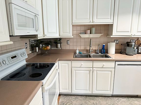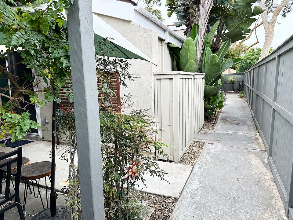One story end unit with only one attached wall and 2 car garage. Bright sunny kitchen featuring skylight, stainless sink, upgraded cabinets with pull-out & lazy susan, soaring vaulted ceilings in living/dining rooms, cozy fireplace, wall of sliders/windows gives this area all natural light, 4 tubular skylights, recessed lights, vaulted ceilings in both secondary bedrooms, mirrored wardrobe doors, 4 Inch basboard T/O, relax on the large private patio and feel the cool ocean breezes. Onlly an 8 block walk to the beach! Pet deposit of $1000