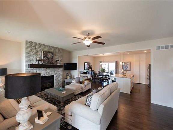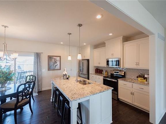This Spruce by Shepard Homes will knock your socks off! Former model home with fully finished basement on a walkout lot! Master suite on Main floor. 2 additional beds + full bath on Main. Hardwoods in Kitchen, Living and Dining. Gas fireplace with stone surround. Large island with granite countertop and walk-in pantry in Kitchen. Dual heads in Master shower with dual vanities. Deck off dining area with covered patio below. Basement finished with large rec room area, bedroom and bath. 3 car garage with mud bench and shelving. This home has it all! Move in and enjoy!! Neighborhood amenities include pool, walking trails, firepit and playground area. Spring Hill School District. Come and see it today!