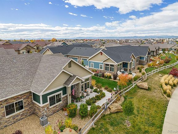 Like NEW Patio Home!!! NO MAINTENANCE Ranch style living!!!! 2 car attached garage, 2 bedrooms plus home office that can be used as 3rd bedroom. Mountain view from your front door! A Zero-step entrance can easily be constructed from the garage by planning the house floor and garage floor on the same level (or nearly so) rather than having the typical one or two steps up into the house. In those cases, either no ramp or a very short concrete ramp is all that is needed. REAL HARDWOOD FLOORING throughout the main living areas. Stainless steel appliances, granite countertops, high ceilings, lots of windows, gas fireplace, formal dining room and large peninsula! Incredible added media room off the great room for additional seating, great space for large piano or additional home office. Primary suite with attached en suite bathroom with extended walk-in shower and dual vanity with granite countertops, lovely walk-in closet. Secondary bedroom with ceiling fan, carpet flooring and access to hallway full bathroom. Laundry room at garage entry with additional cabinet and closet storage. WALK TO PARK AND COMMUNITY OUTDOOR POOL! Incredible location, 7 minutes to Buckley Air Force Base, 20 minutes to DIA, 10 minutes to Southlands Mall, 10 minutes to Cherry Creek State Park and Denver Tech Center.