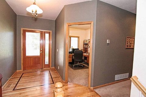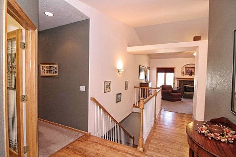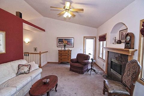 Immaculate custom home with low maintenance exterior. The inviting great room with vaulted ceiling and granite surround fireplace opens to a private deck. Adjacent, the formal dining room boasts a cherry/walnut floor. The large kitchen with lots of cabinets, slab granite counters and stainless steel appliances, center island and breakfast nook opens onto a second deck. The master bedroom has a marble framed fireplace and large, walk-in closet and direct access to the rear deck. There is also a study/bedroom and another large bedroom on this level. The sunny, lower level walk-out provides a huge game room and two additional bedrooms. Three car garage, stucco exterior, composite shingle roof.