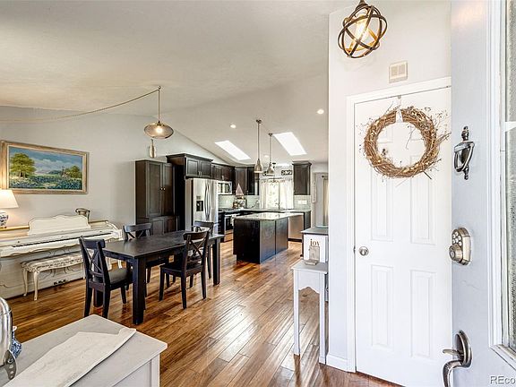 This beautifully maintained corner-lot home is located in the award-winning Cherry Creek School District. From the moment you step inside, you’ll be impressed by the vaulted ceilings and skylights that flood the dining area and gourmet kitchen with natural light, creating an open and airy feel. The chef’s kitchen features granite countertops, a gas range, an island with storage, a stylish tiled backsplash, and a pantry—perfect for everyday living and entertaining. Adjacent to the kitchen, the cozy living room offers a warm ambiance with its charming wood-burning fireplace and seamless connection to the main floor. Downstairs, the finished basement includes a conforming bedroom with brand-new hardwood flooring and a ¾ bathroom, ideal for guests or a private home office. The large laundry room comes equipped with ample space and a convenient hanging rack. Upstairs, you'll find three additional bedrooms, including a spacious primary suite. With hardwood floors throughout, this home is entirely carpet-free. Recent updates include: New electrical panel (2021),new roof and exterior paint, whole house fan (newer), new water heater, newer dishwasher, replaced dryer vent ,new hardwood flooring in the living room and basement. Conveniently located near a variety of shopping and dining options, including Southlands Mall, and just a short drive to Buckley Space Force Base, DTC, I-225, E-470, DIA, and more. Don’t miss your opportunity to own this move-in-ready gem—schedule your showing today!