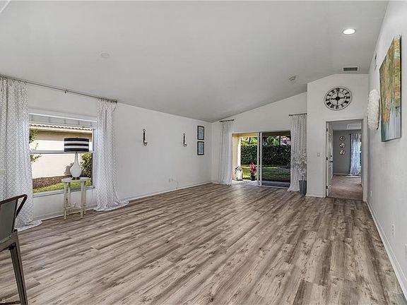AMAZING! Toll Brothers Luxury Home Builders Popular Granada Model. This Stunning One-level Custom 3 bedroom, 2 bath home is located on an oversized lot across from a large waterfront park. You'll love the light and bright, open-concept floor plan with Vaulted ceilings, beautiful white kitchen and Corian counter tops , a gas range is included. Check out the Spacious Master Bedroom with coffered ceilings, huge walk-in closet and beautiful separate his and her vanities.The second bath is conventional with a tub/shower combo. Recent updates include New Luxury Vinyl Planking in the living / dining rooms and new color coordinated carpet in the bedrooms . The Granada model offers Front and Back covered patios for great outdoor living areas.This community offers an awesome Community Pool and Hot Tub , Har-tru Tennis Courts, Pickle Ball Courts , Billiard Room . Card Room and Community Room. Perfectly situated in the Heart of Beautiful Estero - close to FGCU, SW Florida International Airport , 3 beautiful malls and many restaurants from fine dining to fast food . Low HOA Fees, Location and a Great Home. Make your move today on this great value !