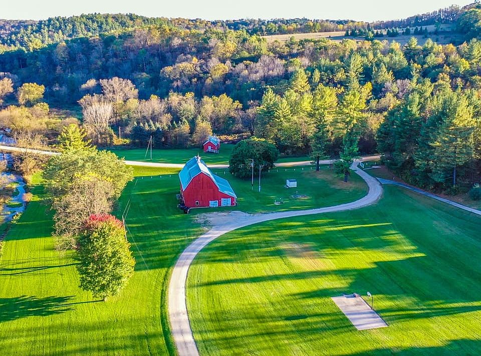 This extraordinary property is situated in the breathtaking Winnebago Valley, renowned for its dramatic limestone bluffs, deep river valleys, and spectacular natural scenery—a landscape untouched by the last glaciation. The location offers seclusion and natural beauty while maintaining excellent accessibility: a short drive to the charming town of Caledonia, 38 minutes to La Crosse, WI, 45 minutes to Decorah, IA, and 1 hour and 30 minutes to Rochester, MN.