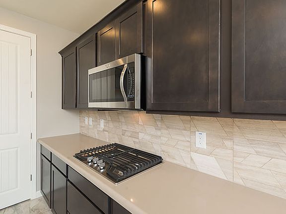 This home features upgraded cabinets, stainless steel appliances with a double oven and gas cooktop, two-tone interior paint, granite kitchen countertops with a tile backsplash and pavers at the driveway and porch. A must see home.