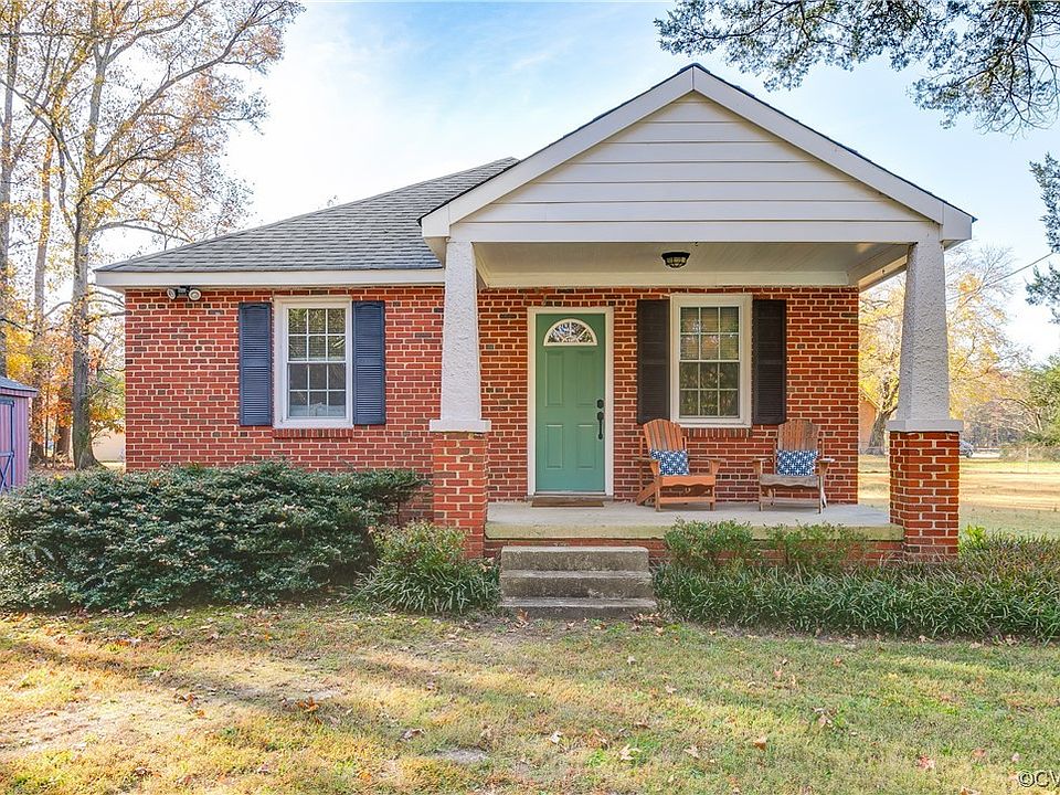 This adorable bungalow offers the best of quiet country living while still having easy access to both 95 and 288! All brick exterior, newer thermal windows, 2021 HVAC, 2021 roof, and an open, flat lot all guarantee easy maintenance. Plus a gardening plot out back and 1 car garage with electricity perfect for your motorcycle, landscaping tools, and workshop projects! The sprawling front porch opens up to the large living and dining rooms with tons of natural light before leading to the cozy kitchen with electric cooking, refrigerator, newer dishwasher, and full laundry room. The two well-sized bedrooms are perfectly situated on either side of the updated bathroom, and the hardwood floors and neutral paint throughout are in pristine condition. This cozy Chesterfield cottage is truly move-in ready inside and out!
