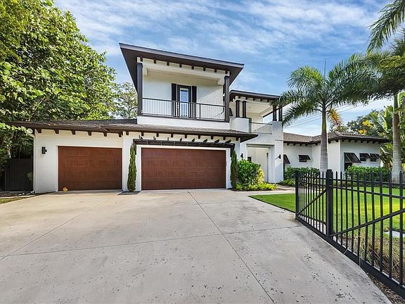 This Custom Designed Contemporary Home is Located "West of the Trail" in one of the most sought after areas in Sarasota. Within one block of Southside Village & Sarasota Memorial Hospital, a Short Distance to Southside Elementary and just minutes from Siesta Key & Downtown Sarasota, this Residence has been Constructed by Green Life Luxury Homes and offers an Exceptional Level of Finishes and Attention to Detail. This 4,389 SF of Living Space, 4 Bedroom + Office, 4 Full & 1 Half Bath, 3+ Car Garage Home Welcomes you with a Gated Entry and Spacious Driveway you will enter the Foyer through the Double Door Entry and notice Rich Dark Wood Flooring, High Ceilings and the Open Floor Plan of the Great Room. Take note of the Custom Cabinetry & Hardware, Mosaic Tile, Exotic Granites and Custom Lighting Inside & Outside. The Kitchen Boasts State of the Art Appliances including a WOLF Gas/Induction Cooktop, Double WOLF Wall Convection Ovens, a Sub-Zero Refrigerator, Separate Ice Maker & Bosch Dishwasher and a Large Walk In Pantry. The Wine Room provides the perfect venue for wine storage and presentation. The Ground Floor Master Suite includes double walk in closets, a 13 x 16 Spa-like Master Bath Retreat with Large Fan, Frameless Glass, Freestanding Soaking Tub, Large Vanity with Double Vessel Sinks and the Unique use of Decorative Rock. You will also find Three Additional Spacious Bedrooms including a 2nd Floor Suite with Balcony, a Game Room with French Doors to the Rear Yard, an Office and a Bonus Rooms. Outside the Dramatic Heated Screened Enclosed Pool Area includes a Spool design Pool/Spa with Rain Shower Feature, Custom Lighting and a Fully Equipped Outdoor Kitchen. The Oversized Three Car Garage offers Car Charging Outlet, Built In Cabinets & Additional Storage. Other Features to Note are the use of Smart Remotes to Control Features of the Home like the Audio in the Kitchen, Great Room, Bonus Room & Around the Pool, Utility Room with Cabinets & Large Sink, 2 Tankless Gas Hot Water Systems, French Doors & Plantation Shutters, Multiple Large Storage Closets throughout, Central Vacuum, Fenced Yard with Outdoor Lighting, Mature Landscaping, Impact - Insulated Windows and Doors complete this amazing residence.