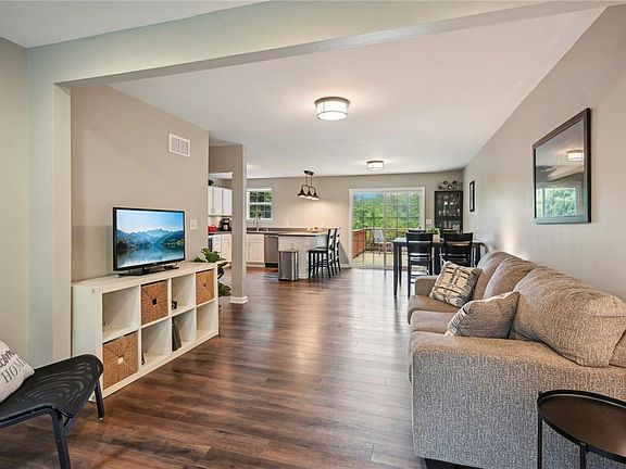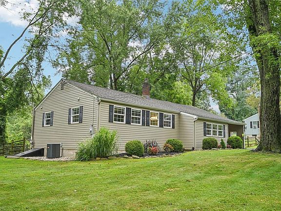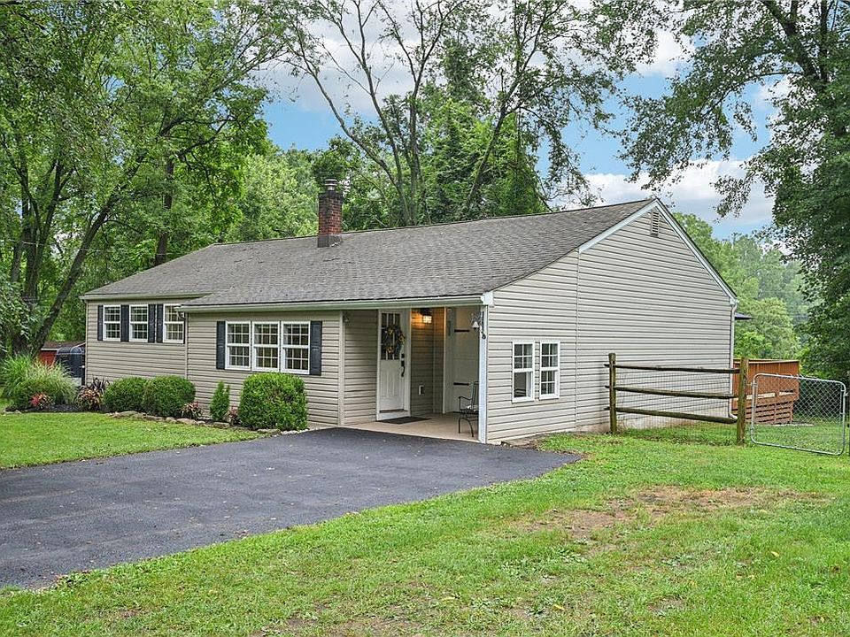 The best of both worlds! This 3-bed, 2-bath ranch home is nestled on a serene, private road with views of open fields in the front & wooded areas in the back yet conveniently close to amenities. Situated in the coveted Saucon Valley School District, it provides a peaceful retreat with easy access to everything you need. The home offers an open-concept layout with newer luxury vinyl plank flooring throughout. The sunlit living room flows effortlessly into the dining area with sliding glass doors leading to a 16x20 deck with new boards, ideal for outdoor gatherings. The generously sized kitchen has stainless steel appliances & a peninsula with seating, offering a good space for cooking & gathering. Down the hall, the primary bedroom is spacious & includes a beautifully updated ensuite bath. 2 additional bedrooms are served by an updated hall bath, ideal for family or guests. The finished basement adds extra living space, including a home office & a media room complete with built-in speakers. A distinctive feature of the property is the charming detached stone old summer kitchen, which makes a nice second office, studio, or workshop. Additional features include fresh paint throughout, central AC, & a one-car garage. The home was completely redone in 2005/2006 down to the studs! Ideally located, this home is across from Lehigh University's Goodman campus with 500 acres of walking & biking trails, & close to the SV Rail Trail, as well as shopping, dining, & major highways