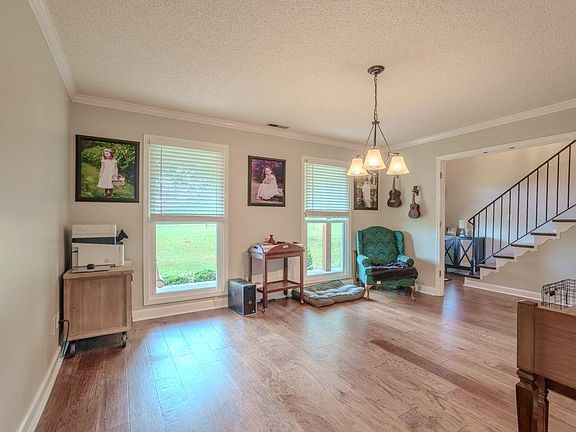 Step onto the large front porch and take in the serene surroundings—a perfect spot for enjoying your morning coffee. Inside the home, there is beautiful hardwood and tile flooring, with no carpet, offering an easy-to-maintain living space. This home has 3 bdrms plus a bonus room upstairs that is currently being used as a 4th bdrm. The dining room is ideal for hosting family gatherings, and the spacious kitchen makes meal prep a breeze.