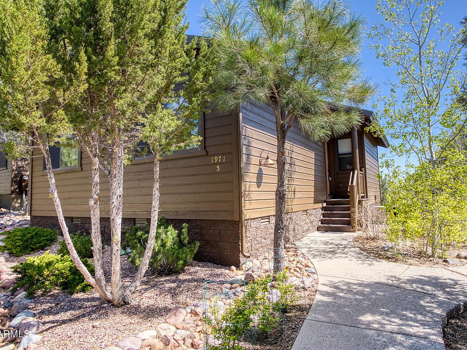 The perfect lock and leave home, surrounded by beautiful pine trees and just over 6,800 feet altitude ... Setting up some beautiful summer weather to enjoy on your easy-to-care-for composite Trex back deck or on your daily walks. The nicely appointed home features 2 bedrooms and 2 full bathrooms , laundry room, detached garage, and an open floor-plan for relaxing and entertaining. Wood laminate flooring, granite countertops, and vaulted tongue & groove ceilings complete the ideal set up! Just in time for the approaching hot temperatures elsewhere... Take advantage of this priced to sell beauty! Now priced lower than recent model-match closings!