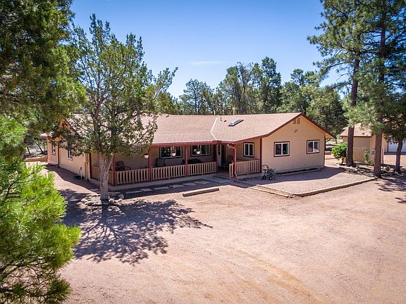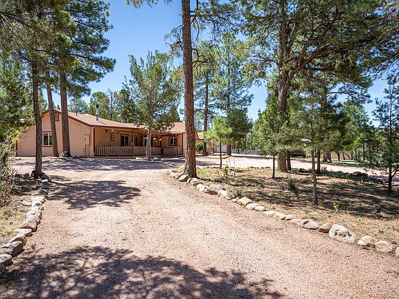 Seclusion in Towering Tall Pines! This ranch style single level home has split floor plan w/3 bdrm, 2 bath plus expansive office/exercise room and an add'l hobby/workroom. Interior boasts beautiful new engineered laminate floors, upgraded kitchen cabinets, new lighting as well as a formal dining room and wood-burning stove. Outside offers a large covered composite deck overlooking 2.75 acres of heavily treed property ideal for gathering w/ family and friends or watching the kids and animals to run and play. The property also comes with an over-sized two-car garage and/workshop, 20x30 carport, RV dump & hookup, utility sheds, raised garden, chain link cross fencing which could easily be used as a corral. All this conveniently located in the heart of Heber-Overgaard. Don't Wait, Call TODAY!