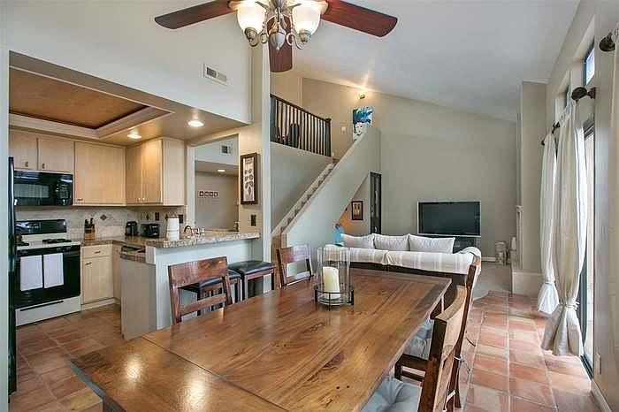 High Ceilings - Independent Home Feeling & Easy to Clean. Perfect coastal home to relax and unwind in, quiet with fantastic views, pool, spa, tennis court and curated lawns to spread out on, spacious (high ceilings and bonus rooms, curiously provide big house feeling and yet easy to maintain), airy (3 balconies), walking distance to everything! Everything you need nearly packaged together inside(washer, dryer, dishwasher, fridge, gas oven and cook top, lots of storage space), one car covered garage with storage and plenty of parking. Golf course views and near some of the best resorts (omni la costa, park hyatt, sheraton and legoland). Dogs and Cats Welcome: $100/month and additional $200 security deposit. Please do not disturb current tenants. Visits will only be entertained for select folks who can provide some background information for pre-screening. E.g - number of people staying, pets, income range, current and residence history, current and former employment status, and any other information that will help us decide whether to move forward with your interest and onto application process. Owner Pays for Water and Trash. Renter responsible for gas and electric. Rent due prior to first of month. No smoking allowed. Renters Insurance Required. One car garage with storage and open street parking. Small Dogs Welcome: $100/month and additional $100 security deposit.