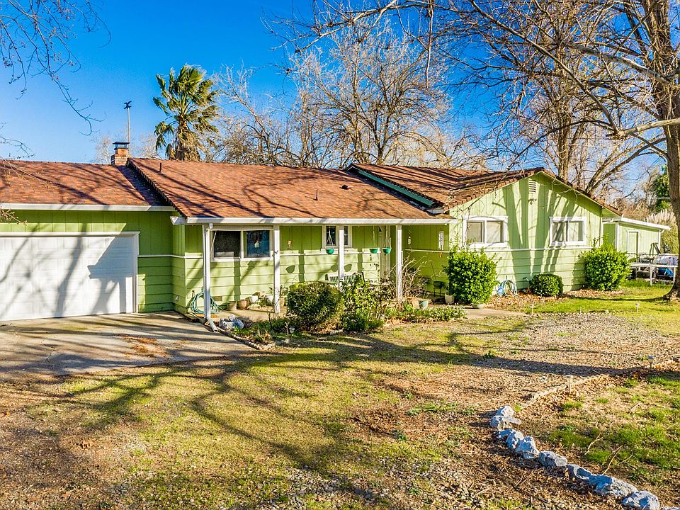 Great country property located on nearly 2 acres! Bright and open with laminate flooring and ceiling fans throughout. Separate family and living rooms. Open beam ceiling and a cozy fireplace. Charming kitchen and dining area. Spacious master and central cooling. Large 2 car garage with laundry area. Multiple storage buildings, barn, garden area, RV parking and a convenient circle driveway!