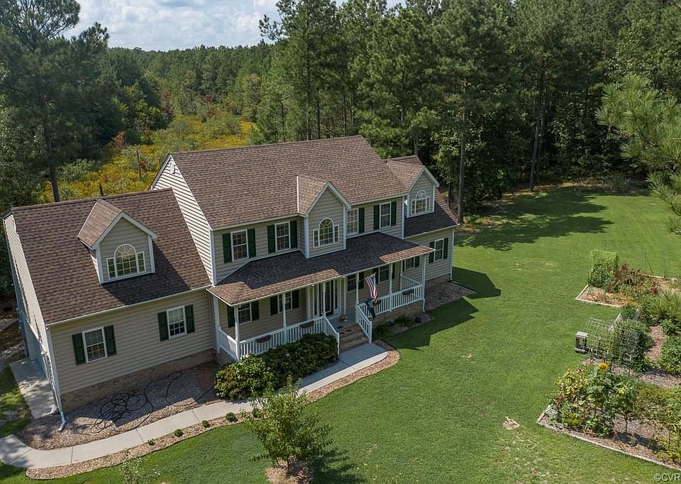 REDUCED! Stunning vinyl 2-story home in Prince George!! 5 bedrooms, 3.5 baths, 3,120 square feet, 5.2 acres, dual zoned heat and air, roundabout driveway, 2 master bedrooms, and so much more. The first floor offers a formal living room with hardwood floor and a dual-sided fireplace, a formal dining room with columns, chair rail, and hardwood floors, a very spacious eat-in kitchen with center island, pantry, tile back-splash, plenty of cabinets, and an attached morning room with Cathedral ceiling. Large family room with carpet and the other side of the dual fireplace, a half bath, and the lovely first-floor master bedroom complete with carpet, ceiling fan, and master bath. The 2nd floor features the huge 2nd-floor master bedroom, also with double closets, carpet, ceiling fan, and private bath, the additional 3 large bedrooms, laundry room, and another full bath. The property has a country front porch, a screened rear porch, and an open deck, along with a detached 16X20 storage shed, and a Generac Generator! Private location, the potential for horses and livestock, but still convenient to surrounding cities. Viasat Internet with higher speeds and unlimited data usage Check it out!