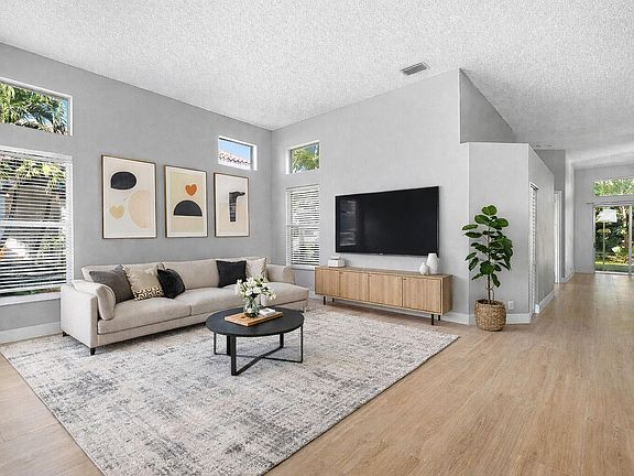 Beautiful single-story residence located in one of West Boca's most desirable gated communities. This 4-bedroom home features high-volume ceilings and a spacious split-bedroom floor plan designed for comfort and functionality.The updated kitchen showcases modern cabinetry, granite countertops, stainless-steel appliances, and opens seamlessly to the family room, ideal for everyday living and entertaining. Wood and tile flooring extend throughout the home, while the roof was replaced in 2021. Outdoor living is enhanced by a screened patio with covered lanai space.Residents enjoy a newly furnished, modern clubhouse and an impressive selection of resort-style amenities, including a state-of-the-art fitness center with lockers, showers, and sauna; two lighted tennis courts; basketball court; billiards and game room; private movie theater; playground and tot lot; large swimming pool and jacuzzi; meeting room; and a gala room available for private events. The community offers 24-hour gated security with rover patrol. - Some photos virtually staged.