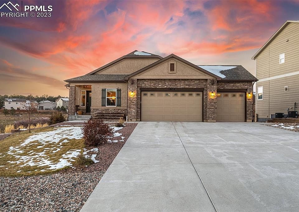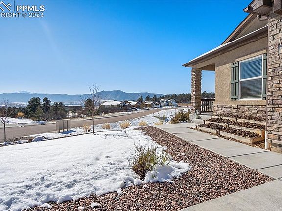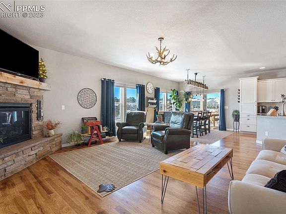 Welcome to this charming rancher ideally positioned on a corner lot, offering captivating unobstructed mountain vistas from the yard, living room, dining room, kitchen, deck, and Primary Bedroom. Step inside to discover beautiful wood flooring gracing both the living room and kitchen. The open layout is designed for entertaining, affording scenic mountain views and stunning sunsets from the living room and kitchen. A cozy gas stone fireplace provides warmth and ambiance in the main living area during the winter months. The kitchen is a chef's delight, featuring a gas stove top, double ovens, a walk-in pantry, a spacious island, an appliance garage and abundant cabinet space. The main level boasts three generous bedrooms with ample closet space. Enjoy easy access to the covered deck from both the kitchen and master bedroom, all while taking in the mountain and open space surroundings. The expansive master bedroom boasts custom window coverings and a luxurious 5-piece master bath with a large soaking tub and oversized shower. On the main level, you'll also find a conveniently located laundry room with garage access and a spacious coat/storage closet. Downstairs you will find the vast family room, which opens to the backyard, filling the space with natural light and additional stunning views, thanks to the walk-out design. The basement is pre-plumbed for a wet bar and features a generously sized theatre room. With a 3-car garage equipped with built-in storage shelves and numerous closets, storage space is abundant in this impeccable home. This pristine property offers the complete package and is ready for its new owner!